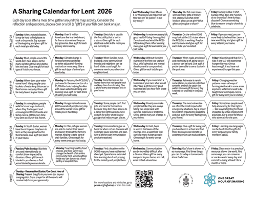 HERE to get a printable calendar that provides a thought or activity for each day of Lent (excluding Saturdays) for families to use at home.